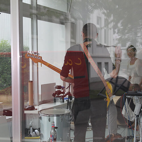Im August 2017 gastierte die Performance-Gruppe LOTEN im Kunstforum Oldenburg. LOTEN sind ein interdisziplinäres Musiker:innen- und Künstler:innenkollektiv aus Bremen. Seit 2014 spielt die aktuell 11-köpfige Gruppe frei improvisierte Konzerte, in denen die Anzahl und Konstellation der Spieler:innen variieren. Wort, Klang, Gebärde oder Skulptur – alles kann Teil der Aufführung sein.