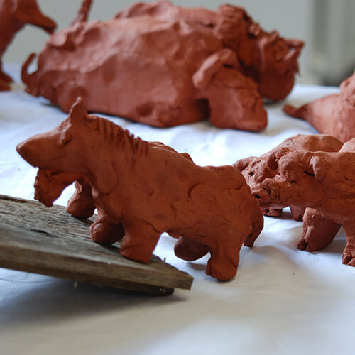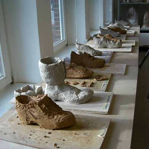 Die Idee: Freischaffende professionelle Maler:innen, Bildhauer:innen und Keramiker:innen entwickeln Entwürfe, die Beschäftigte der Werkstätten unter ihrer Anleitung seriell umsetzen. Das Besondere in dieser Manufaktur: Die Arbeitstechniken sind so gestaltet, dass trotz der Formvorgaben ein gestalterischer Freiraum bleibt. Das macht das Individuelle der einzelnen Exponate aus.
